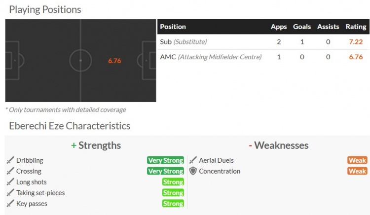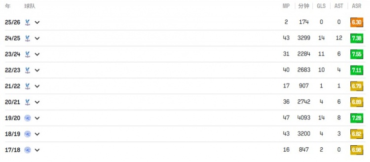 在水晶宫的这五个赛季,埃泽发挥逐步的稳定,在拿到先发资格就成了这支球队的指挥官。众所周知,水晶宫算不上强队且他们主打快速反击,来争取进球的。因此,埃泽在数据上比不了“传统10号”、“古典前腰”;不过就算这样在近三个赛季每个赛季,他可完成10+5以上的数据(进球、助攻),成绩不俗。上赛季则是14+11。