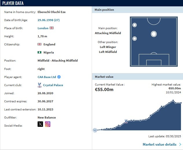 当然,埃泽没有辜负主帅、高管们的信任,在水晶宫效力的169场比赛,他打出40个进球28个助攻的成绩,效率不俗,也慢慢成长为了整个英格兰顶级的指挥官。到这个夏季转会窗,他离队消息满天飞,经纪团队也在努力给他找到登陆豪门的契机。不过埃泽本人却没有被这样消息打乱节奏。
